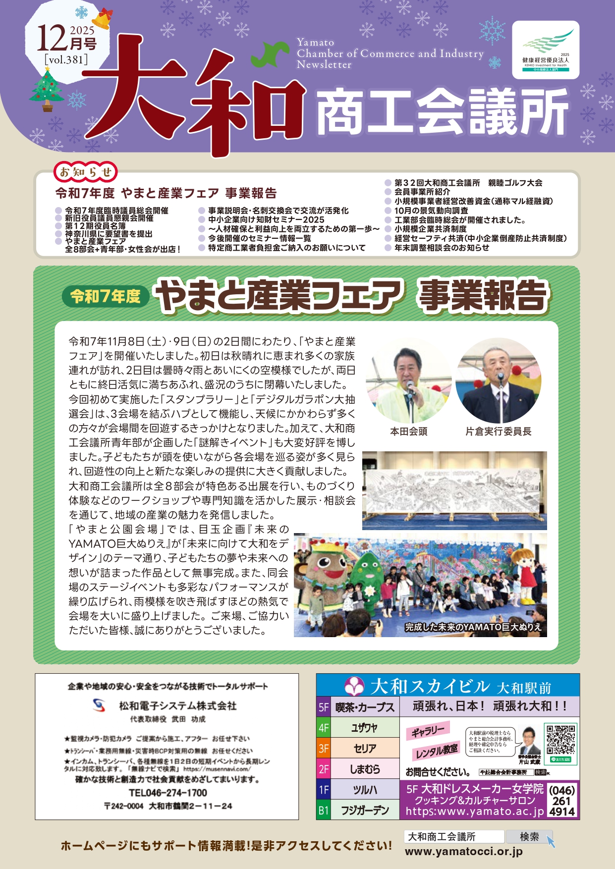 2025.12Vol.381 令和7年度 やまと産業フェア 事業報告、令和7年度臨時議員総会開催、新旧役員議員懇親会開催、第12期役員名簿