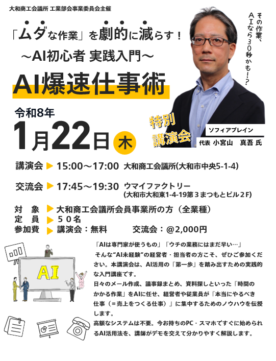 【会員限定】 AI爆速仕事術 特別講演会 |